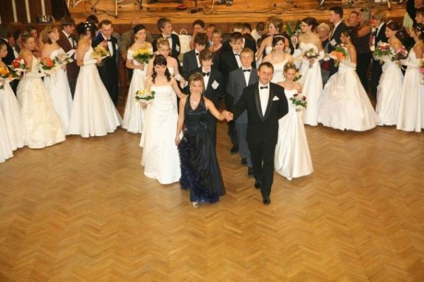 Taneční mistři uvádějí slavnostní polonézu